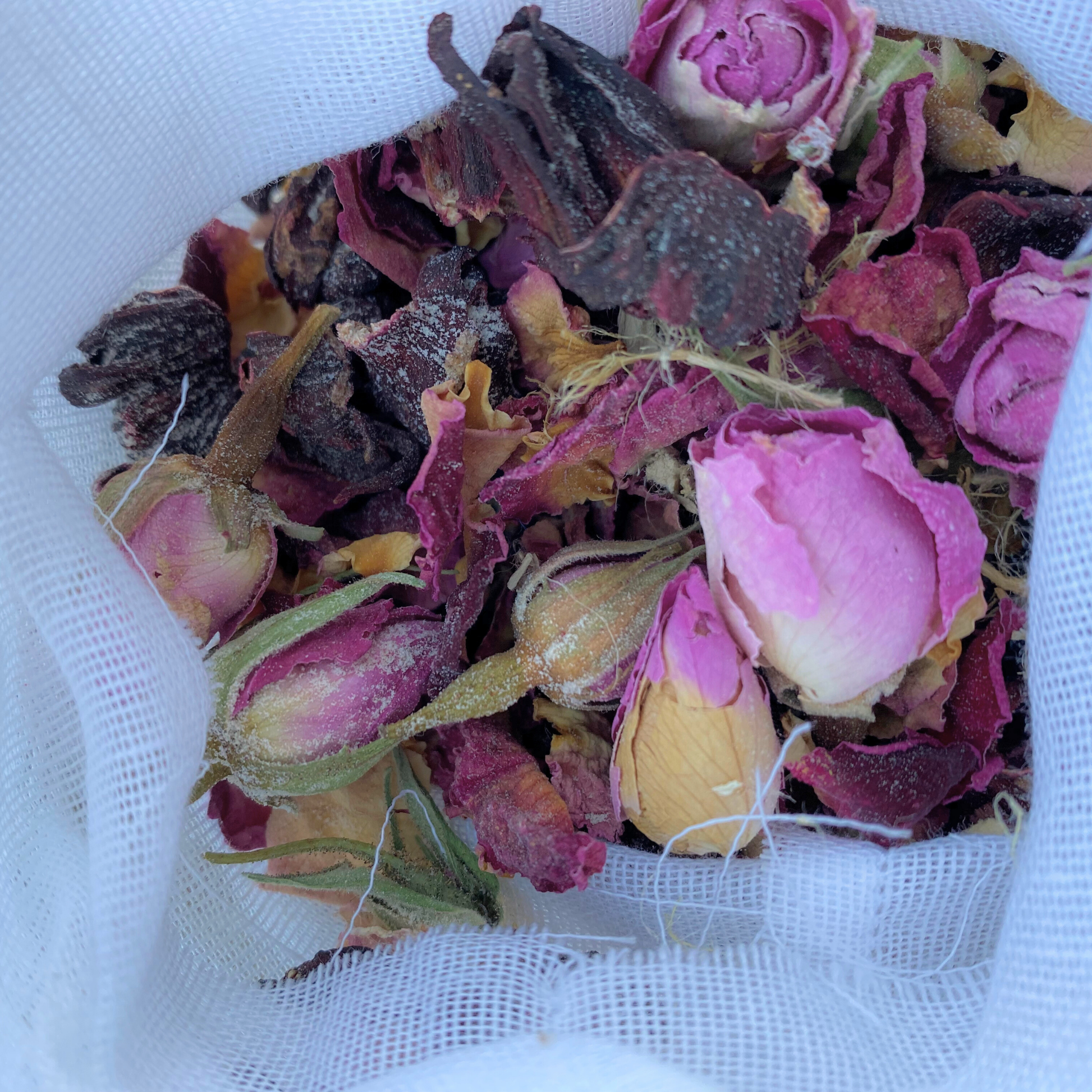 Imaginez une eau chaude délicatement rosée, teintée par l’hibiscus, qui transforme instantanément l’atmosphère en un cocon doux et apaisant.